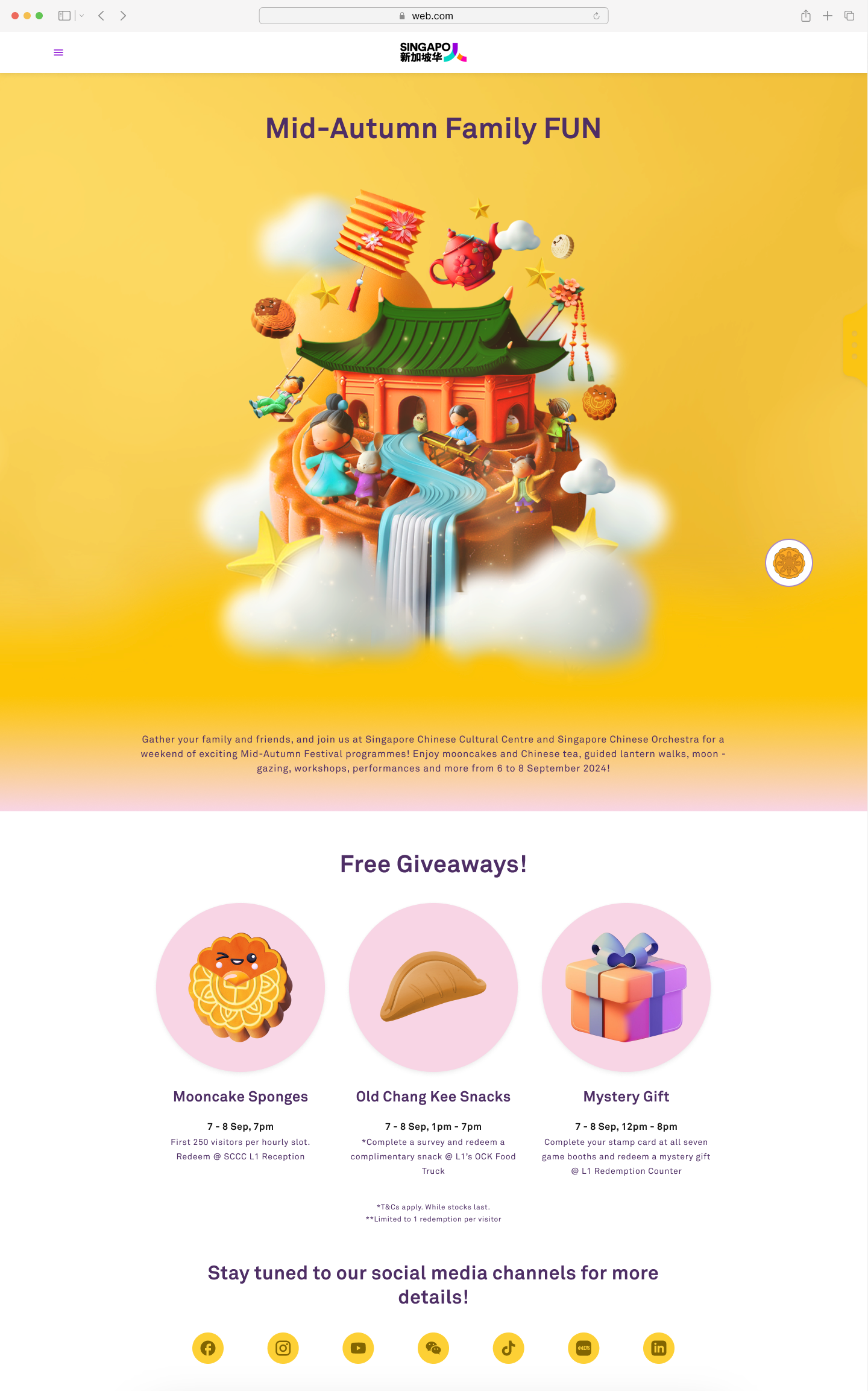 Celebrate Mid-Autumn Festival in the CBD with your family and friends! A weekend filled with game booths, performances, workshops and more!